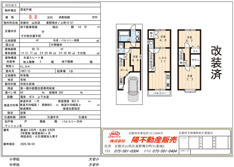 - 地下鉄東西線 『椥辻』駅 徒歩 14分